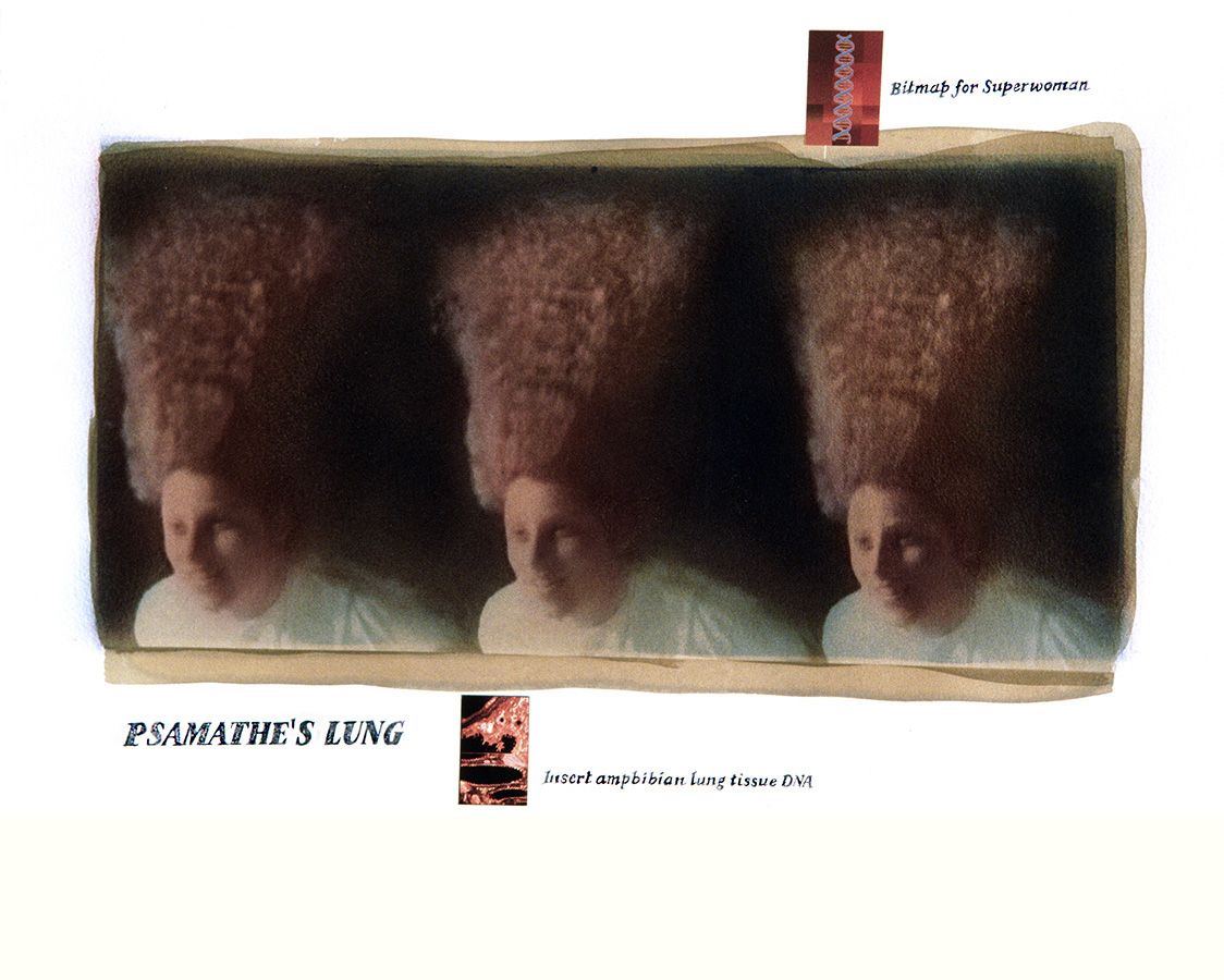 Modern Medicine, the Atomic Age, and now The Genome Project have all provided new twists to ancient fears and explanations: science fiction- that terrifying meld of science and myth. As we envision cloned creatures, of humans made perfect, of mongrelized half-human beasts patched together with DNA infusions, a whole new yet oddly familiar tableau opens in the realm of science fiction. The Archeology of the Body addresses this ongoing blend of fear and wonder of our natural world. The portraits are the formulas for ancient Greek gods and goddesses. Simply insert the proper tissue samples, splice the DNA helix and voila! All this, of course, is virtualized through the computer. Eureka! We've found the map!