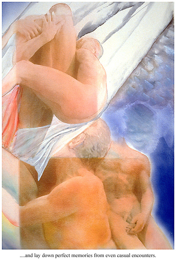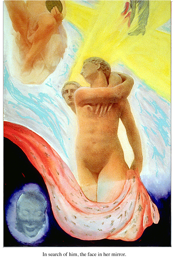 Love, Lust, Betrayal: The ultimate search for perfection, the ultimate disillusion. It is the ultimate story, the one repeated again and again. The poet Robert Graves once said, "there is but one story". Change the names, sex, place, time, whatever... it's still the same old story: anticipation shifts reality. Reality returns. These images, statues from the Metropolitan Museum of Art, were created as photographic gum bichromates with additional painting on watercolor paper.